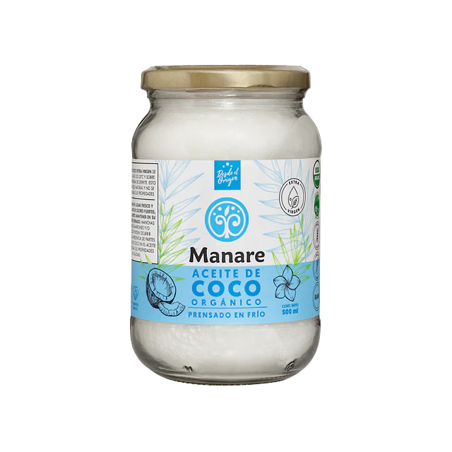 Aceite de coco orgánico procesado artesanalmente a bajas temperaturas a partir de cocos frescos para así conservar todas sus propiedades y nutrientes.